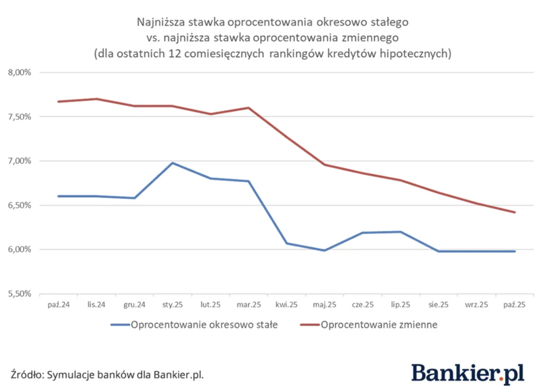 Teraz najpierw mieliśmy sporą zmianę w ofertach i stała stopa stała się popularna w okresie, w którym prawie nikt nie miał zdolnościl Klasyczny kredytz 2% marży i wtedy astronomiczne 7.5% WIBORu był zaporowy dla większości. Z pomocą przyszła stała stopa, która dawała ratę choć trochę niższą oraz jest teoretycznie najbezpieczniejsza, ale momentami mniej opłacalna. Czy taki moment się zbliża?