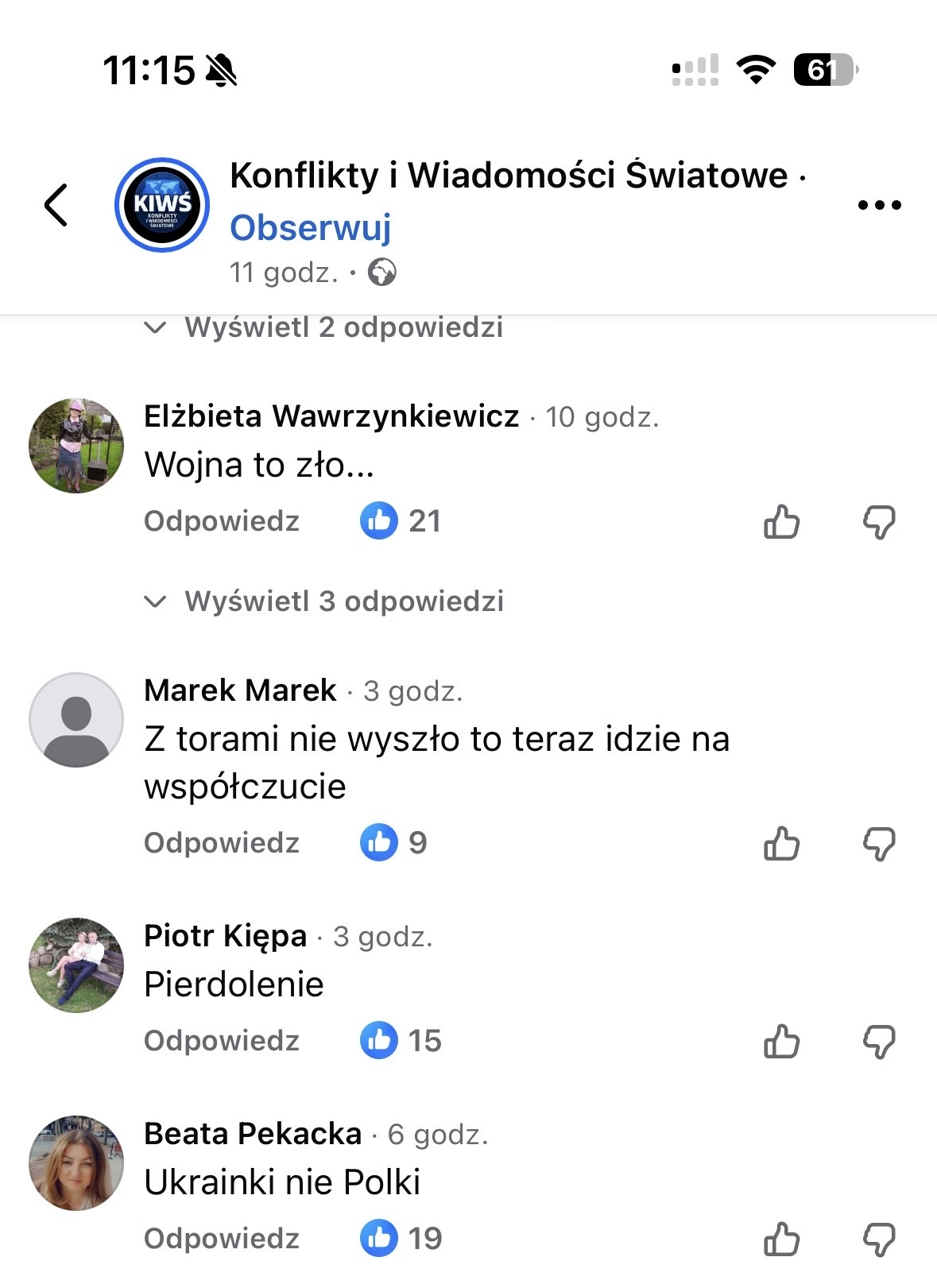 Komentarze pod informacja odnośnie śmierci 7 letniej dziewczynki, polki podczas ataku na Tarnopol.
