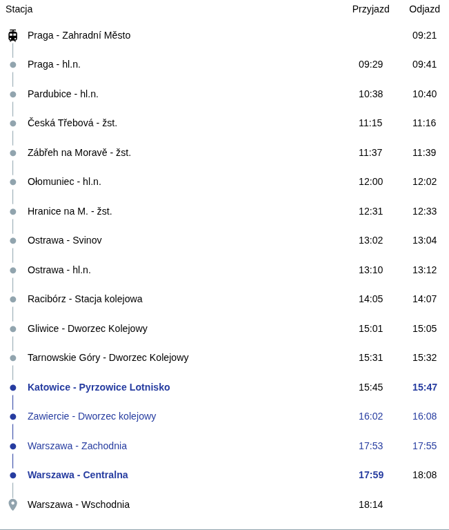 Stacje w Polsce które otrzymują tymczasowo dostęp do tego połączenia to: Zawiercie, Pyrzowice Lotnisko, Tarnowskie Góry, Gliwice, Racibórz