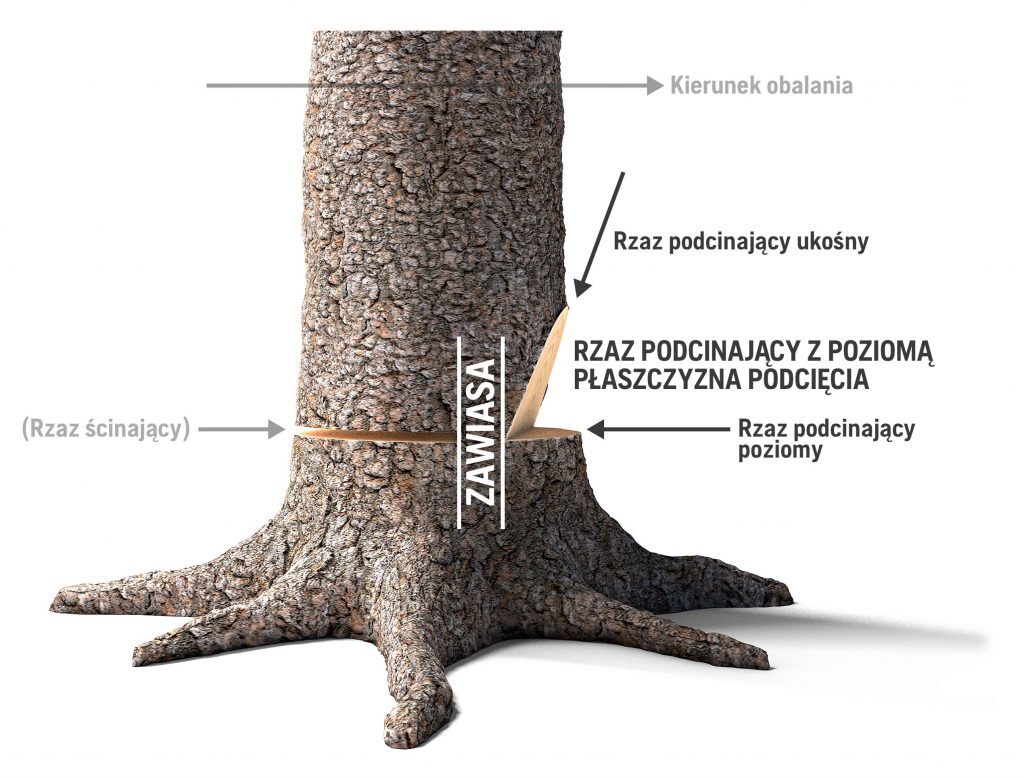 Pilarz na zrębie ma ustalony kierunek obalania (tak to prawidłowa nazwa) drzew. Ustala się go na podstawie rozbudowy koron i pochylenia większości drzew w danym kierunku. Zazwyczaj jest to kierunek wschodni wynikający z tego, że większość wiatrów w Polsce wieje z zachodu.