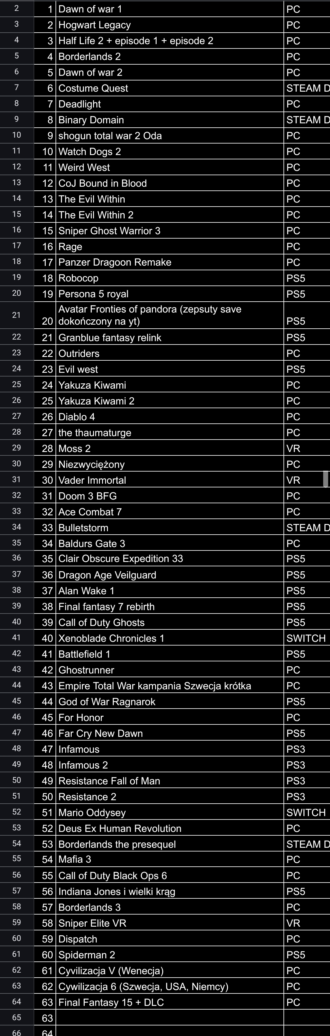 Szczególnie, że od pewnego czasu prowadzę excela z grami ukończonymi w roku i średnią to około 50 na rok :)
